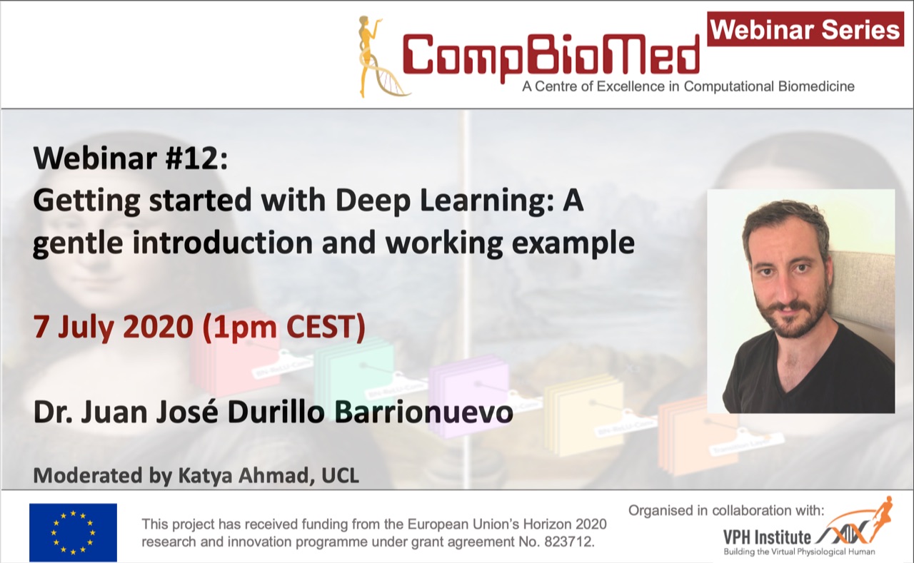 The next CompBioMed’s webinar will take place on 7 July 2020 at 1pm CEST with a presentation titled "Getting started with Deep Learning: A gentle introduction and working example" by Dr. Juan José Durillo Barrionuevo.